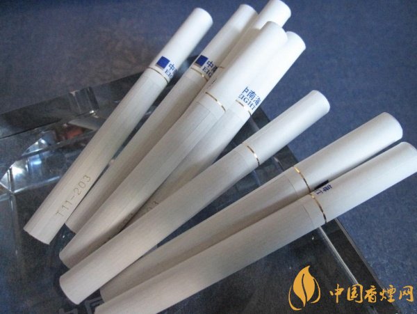 煙支潔白優(yōu)雅,填充堅實,結(jié)構(gòu)不錯。過濾嘴設(shè)計彰顯品牌個性,藍(lán)色的中南海字樣,配以金色的圈環(huán)設(shè)計,像優(yōu)雅的紳士一般,讓人一看就很喜歡,煙支上印有數(shù)字,據(jù)說印有數(shù)字的是真品。