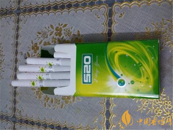 520哈密瓜爆珠香煙外觀清新淡雅,以自然清新的綠色為主色調,配以時尚的炫彩設計,非常具有吸引力。煙盒上印有520數(shù)字,漩渦型爆珠設計,看著非常有感覺,煙盒上端的白色點設計,時尚元素感極強,整體感觀效果非常好。
