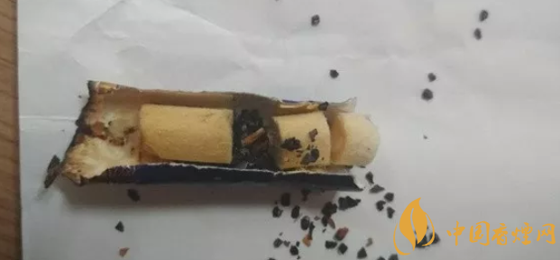 真龍海韻軟盒好抽嗎?煙支為普通煙長度,濾嘴也是正常長度。濾嘴紙一側印有真龍字樣,對應那邊印有南海龍王字樣。濾嘴紙包裹濾芯非常緊,剪刀插不進去,上圖是樓主用小刀劃開的第三支煙蒂。整支濾芯分四個部位,從煙葉接觸處點來算是:長海綿濾芯→活性炭→短海綿濾芯→硬海綿濾芯圈。