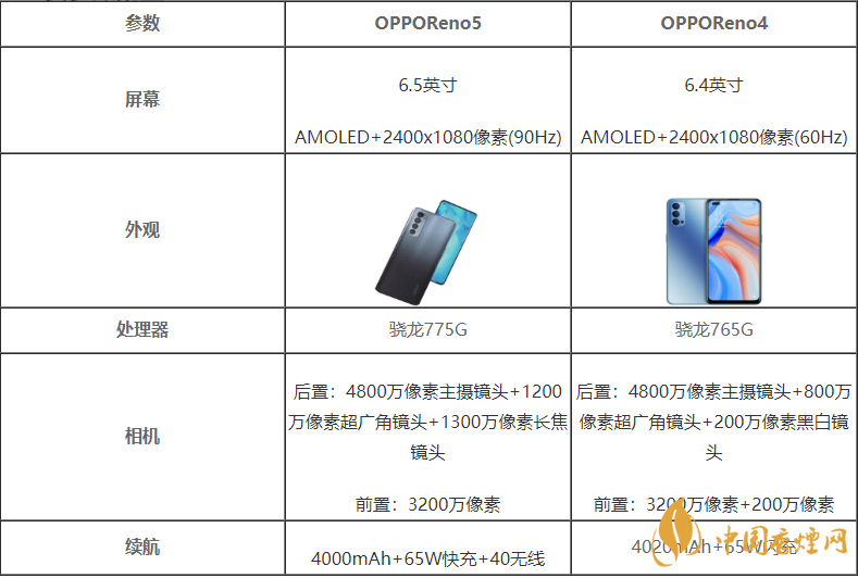 OPPOReno5?電池容量4000mAh,配上了多種充電方式65W快充和40無線,讓用戶可以雖然挑選。OPPOReno4電池4020mAh,配上65W閃充讓用戶可以縮短充電的時間