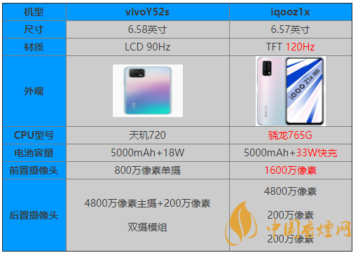 vivoY52s和iqooz1哪款手機(jī)更好?vivoY52s一款性能均衡的新手機(jī),那么這款新手機(jī)和iqooz1x相比較有著什么樣子的差別呢?又是哪一款手機(jī)有著更加高的性能呢?現(xiàn)在就有香煙網(wǎng)小編來為大家介紹一下vivoY52s和iqooz1參數(shù)對(duì)比,感興趣的朋友一起來看看吧。