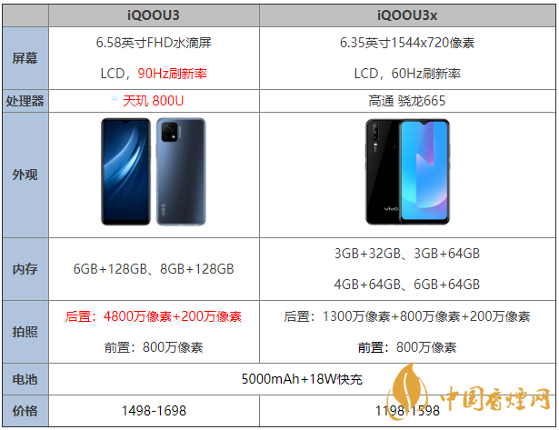 iQOOU3是iQOO旗下最新的5G智能機(jī)型,那么iQOOU3和iQOOU3x有什么區(qū)別呢,這兩款手機(jī)的差距大嗎,哪個(gè)更值得入手,下面香煙網(wǎng)小編將對(duì)iQOOU3和iQOOU3x參數(shù)進(jìn)行進(jìn)行對(duì)比介紹,感興趣的朋友一起來(lái)看看吧!