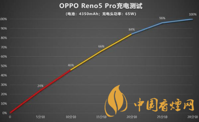 除了超長續(xù)航之外,OPPO Reno5 Pro還加入了65W超級閃充技術(shù),進一步提升快充體驗。從實際測試結(jié)果來看,如果從零開始進行充電,OPPO Reno5 Pro只要5分鐘就能充電24%,10分鐘就能充電46%,充到100%只需要28分鐘,充電速度非常快。即便是手機沒電了,OPPO Reno5 Pro也能快速回血,一會功夫就能完成充電工作,日常使用更方便。