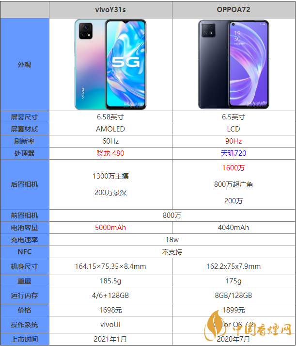 vivoY31s和OPPOA72哪個(gè)好?許多朋友對(duì)比這兩款手機(jī)都十分關(guān)注,那么vivoY31s和OPPOA72有什么區(qū)別?哪款手機(jī)更值得入手?接下來香煙網(wǎng)小編給大家?guī)韛ivoY31s和OPPOA72的參數(shù)對(duì)比,感興趣的朋友一起來看看吧!