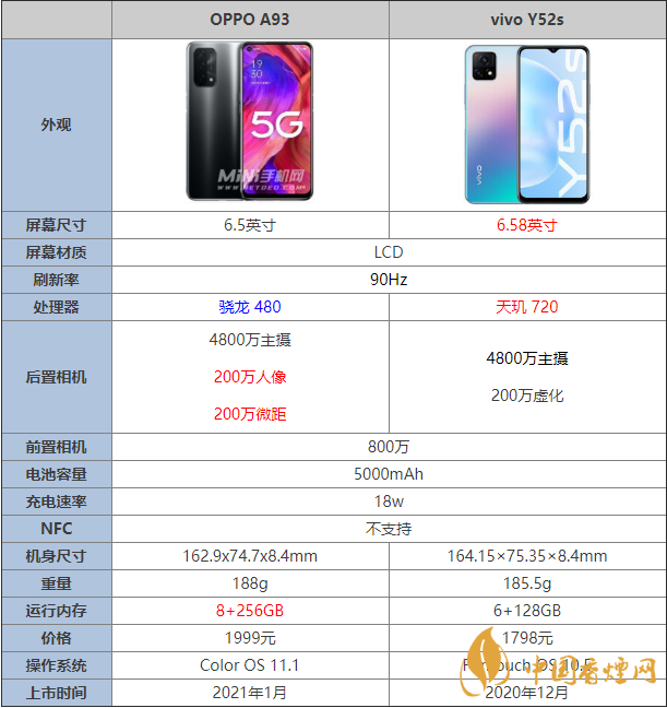 OPPOA93?和vivoY52s:都配備了5000mAh大電池,支持18w有線快充,輕松滿足用戶的每日所需。