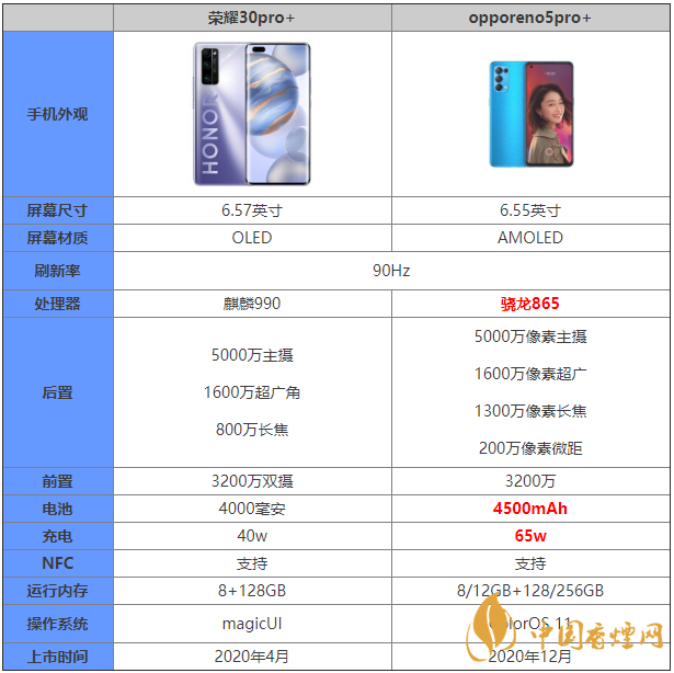 =opporeno5pro+和榮耀30pro+都是大家十分關(guān)注的手機,那么這兩款手機的區(qū)別是什么?哪款手機更好?哪款手機更值得入手?下面香煙網(wǎng)下?lián)苄【帪榇蠹規(guī)碜钚碌膐pporeno5pro+和榮耀30pro+參數(shù)對比,感興趣的朋友快來看看吧。