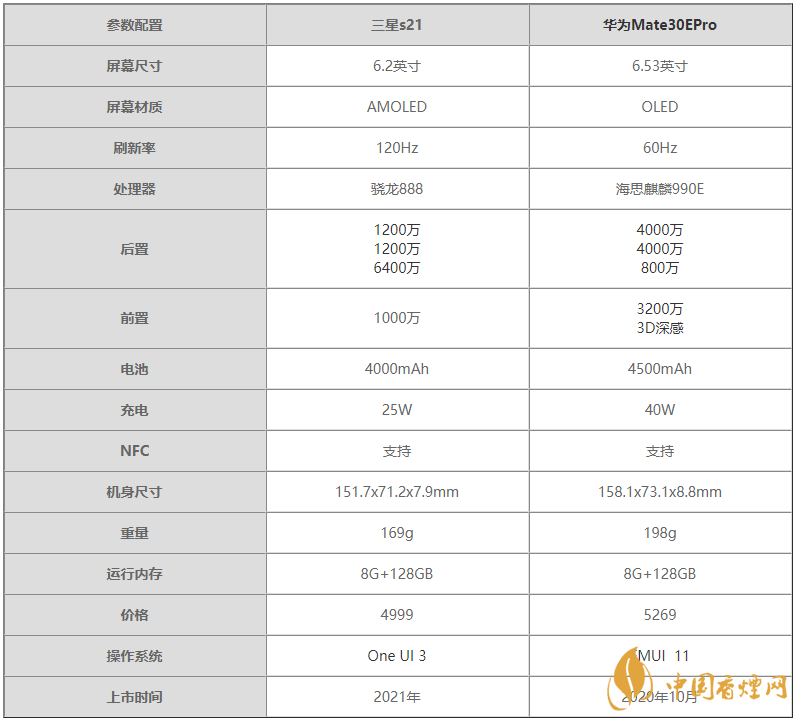 三星s21手機(jī)已經(jīng)正式發(fā)布啦,相信有不少小伙伴們都非常關(guān)注三星s21手機(jī),那么三星s21和華為Mate30EPro有什么區(qū)別?哪款手機(jī)更好?下面香煙網(wǎng)小編為大家介紹一下關(guān)于三星s21和華為Mate30EPro的詳細(xì)對(duì)比,一起來看看吧!