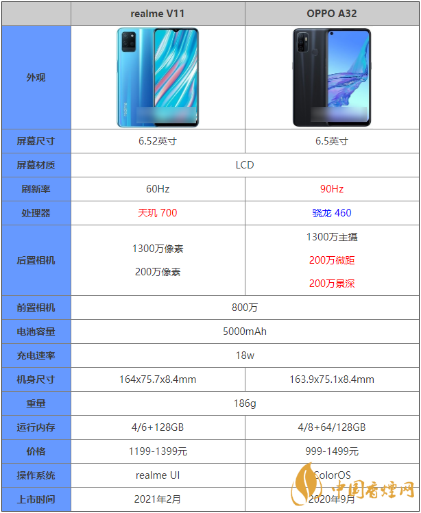 realme V11和OPPO A32:都配備了5000mAh電池,最高支持18w快充。