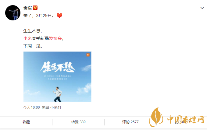 生生不息:小米春季新品發(fā)布會(huì),3月29日見(jiàn)。