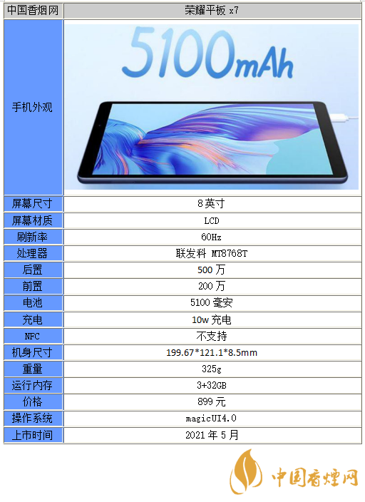 以上就是小編收集到的榮耀平板x7參數(shù)配置-榮耀平板x7性能分析的相關(guān)內(nèi)容,以上內(nèi)容均來源于網(wǎng)絡(luò),僅供參考,一切以實(shí)際為準(zhǔn),更多最新數(shù)碼資訊請(qǐng)關(guān)注香煙網(wǎng)。