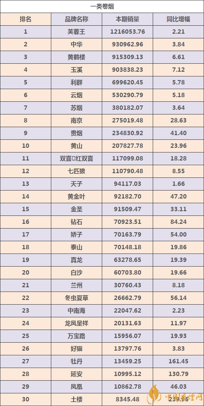 2018年煙草行業(yè)都在全力推動煙草行業(yè)高質量發(fā)展,奮力把煙草行業(yè)各項工作推上一個新臺階。煙草行業(yè)在改革發(fā)展過程中“高質量發(fā)展”成為重中之重,而在此過程中消費升級環(huán)境下的“結構提升”更顯作用突出。那么大家最關心的卷煙品牌銷量情況如何呢?下面就由香煙網小編帶大家一起來了解一類煙卷煙品牌TOP30強的基本情況: