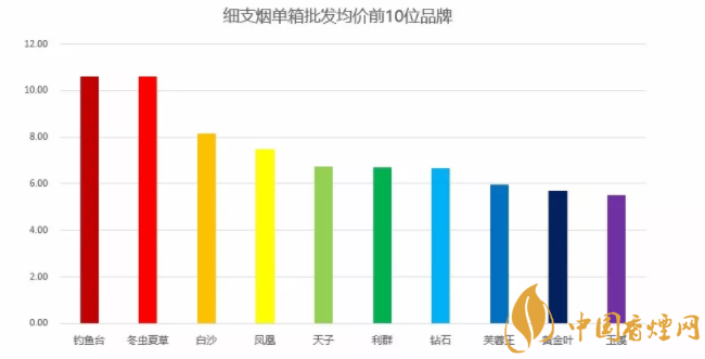 4、如圖所示2018細(xì)支煙排行榜(單項(xiàng)批發(fā)價(jià))圖:中國細(xì)煙排行單項(xiàng)批發(fā)價(jià)前10品牌榜:在第一季度中國細(xì)煙排行中1-3月細(xì)支煙單項(xiàng)批發(fā)價(jià)前10品牌一目了然。第一名釣魚臺、第二名冬蟲夏草、第三名白沙、第四名鳳凰、第五名天子、第六名利群、第七名鉆石、第八名芙蓉王、第九名:云煙黃金葉、第十名玉溪