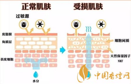 煙草里的“丙酮”,是導(dǎo)致皮膚敏感的罪魁禍?zhǔn)字?。皮膚上的油脂膜既可以阻擋外來(lái)過(guò)敏原刺激到肌膚;又能防止皮膚內(nèi)的水分被空氣蒸發(fā)。這樣才能構(gòu)建出健康的“肌膚屏障”。