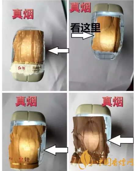 真紅河底色純白,假煙泛黃。