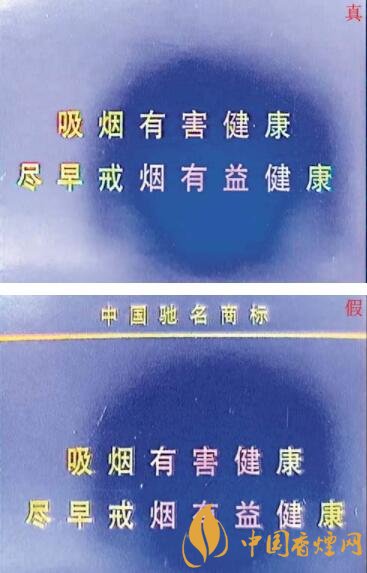 真煙的警示語(yǔ)字體邊緣印刷清晰、平齊、無(wú)重影;假煙的警示語(yǔ)字體邊緣印刷有重影、帶毛邊。
