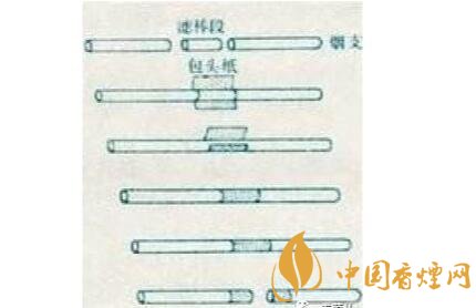 空腔濾嘴:空腔濾嘴是屬于二元復合濾嘴的一種,二元復合濾嘴通常是一段濾材為醋酸纖維,另一段為皺紋紙或生產過程中摻入添加劑(如活性炭)的醋酸纖維??涨粸V嘴是屬于后端為皺紋紙的那種,因為后端為中空,為了不使其塌陷,而醋酸纖維太軟,所以利用皺紋紙做成中空型。因其有一段規(guī)則的空腔, 形成一個低壓通道,抽吸時吸阻小, 能夠顯著提高對煙氣中焦油的過濾效率,有效地減少焦油和一氧化碳的釋放量。