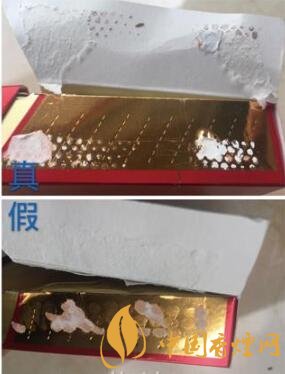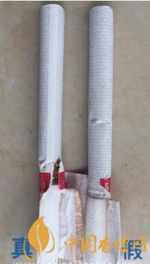 真品卷煙側(cè)邊有一條與側(cè)邊平行的機(jī)器壓痕;假煙采用手工燙封,沒(méi)有機(jī)器留下的壓痕。