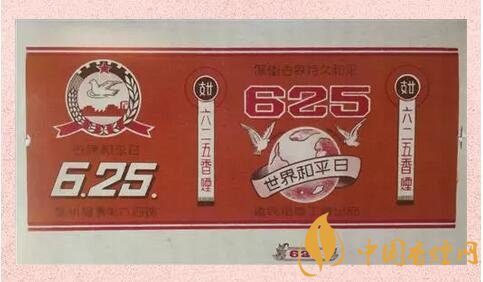 “625”牌卷煙 1950年6月25日,朝鮮半島爆發(fā)了大規(guī)模的戰(zhàn)爭。河南惠民煙廠據(jù)此出品了煙標(biāo),以警示人們珍惜和平。煙標(biāo)上畫有和平鴿,并寫有“世界和平日”,非常醒目。