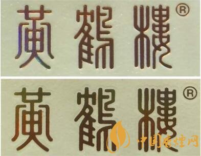 4.黃鶴樓字體。真品卷煙黃鶴樓字體燙金靚麗,筆畫飽滿、圓滑,筆畫中間凸邊緣凹,手摸凹凸感明顯。該款假冒卷煙黃鶴樓字體燙金較為暗淡,筆畫平整,無凹凸感。