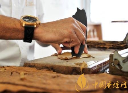 手工雪茄制作前,煙葉必須經(jīng)過(guò)風(fēng)干、發(fā)酵、醇化等200多道工序后,才被送入生產(chǎn)車間。煙葉必須是全煙葉,而且卷制雪茄的部位不同,對(duì)煙葉的要求不同。比如說(shuō)茄芯、茄套、茄衣、茄帽等部位歸位在一顆植株上的話,那么就相對(duì)應(yīng)于植株的淺葉段、干葉段、淡葉段。