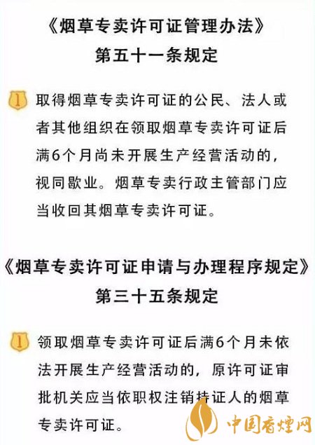 所以,新辦的煙草專賣零售許可證也是會“過期”的,老板們拿到了煙草證后,一定要在6個月內(nèi)訂購卷煙。如果因個人原因不能經(jīng)營卷煙,需向當?shù)責煵菥旨皶r辦理歇業(yè)手續(xù),以免長期未經(jīng)營被注銷煙草證。