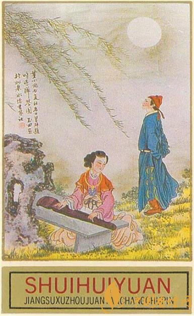 江蘇徐州卷煙廠出品于上世紀(jì)90年代的白底“水繪園”煙標(biāo),主版為水繪園遠(yuǎn)景圖;副標(biāo)展現(xiàn)的是:皓月當(dāng)空之夜,明末清初文學(xué)家冒襄(字辟疆)佇立于幽雅寧靜、垂柳依依的水繪園中,聚精會(huì)神地傾聽秦淮名妓董小宛彈奏古箏的場(chǎng)景;側(cè)標(biāo)印有相關(guān)文字介紹:“水繪園,中華園林之‘孤本’。明末四公子之一的冒辟疆,偕金陵名妓董小宛棲隱如皋水繪園。斯時(shí),文人志士薈集其間,氣節(jié)風(fēng)流,名動(dòng)天下。”此外,我國(guó)火柴生產(chǎn)企業(yè)也出品過寄予“有情人終成眷屬”祈盼的火花。