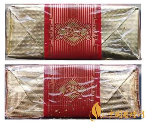 真品卷煙:1.透明紙燙封收縮均勻、自然,有烙鐵痕跡。2.商標(biāo)紙拐角折疊空隙較大。