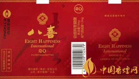 “八喜”香煙高貴典雅的煙標(biāo)裝潢設(shè)計(jì),曾獲得第八屆華東裝潢設(shè)計(jì)大獎(jiǎng)?wù)棺罴褎?chuàng)意獎(jiǎng)。“八喜”香煙問(wèn)世后,青州卷煙廠得知人們很想知道“八喜”具體指哪“八喜”,于是該廠于1999年向社會(huì)廣泛征集吉祥語(yǔ),從中精選出“久旱逢甘霖、他鄉(xiāng)遇故知、洞房花燭夜、金榜題名時(shí)、升官又晉爵、財(cái)源紛紛至、家和體魄健、盡享天倫日”等八句具有代表性的吉祥語(yǔ),作為“八喜”的詮釋和具體所指。