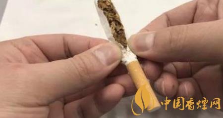 第二,拿出一根香煙,撕開(kāi)取出里面的煙絲,只需要用到煙絲的這一部分;