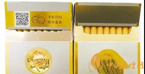 真品卷煙中間“芙蓉花”圖案采用新版壓凸工藝,立體感強(qiáng),金色長方形外邊框上有均勻的細(xì)小壓痕;細(xì)芙蓉王怎么看真假?假煙采用高清掃描仿制印刷,“芙蓉花”圖案采用“芙蓉王(硬)”上的老圖案,金色長方形外邊框上無細(xì)小壓痕,與真品特征存在明顯差異。