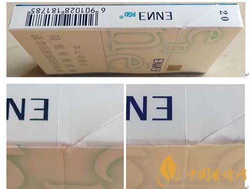 (4)真品卷煙“enne”小寫字母筆畫立體感強(qiáng)。該款假冒卷煙小寫字母筆畫無立體感。