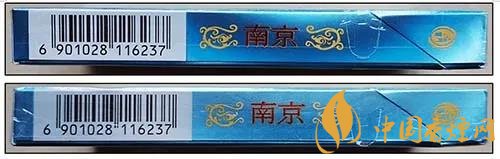 真品卷煙:正面與背面警語(yǔ)分割線印刷套印準(zhǔn)確,線條較粗;南京字體印刷清晰,筆畫凸起感弱。