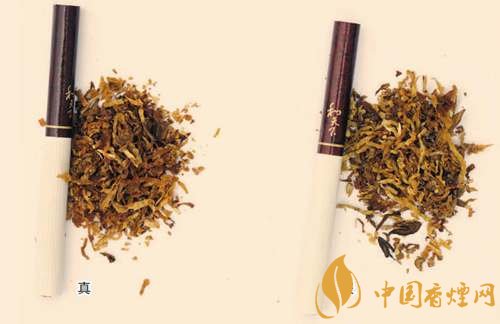 真煙煙支采用復(fù)合濾嘴,煙絲切絲寬度均勻,煙絲疏松、光澤油潤(rùn)性好、呈檸檬黃色,煙絲結(jié)構(gòu)為葉絲和少量膨脹梗絲;假煙煙支采用普通濾嘴,制絲工藝簡(jiǎn)單,煙絲寬度不均勻,有少量梗絲,未經(jīng)過膨脹處理。